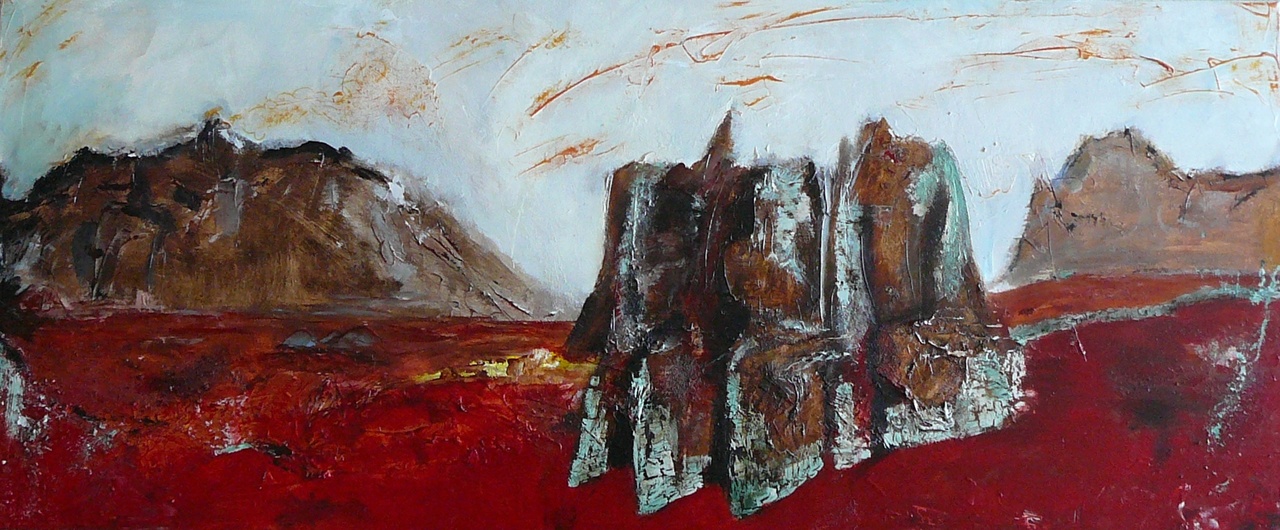 De keuze van mijn kleuren is afhankelijk van mijn stemming, dat merk ik op in mijn schilderijen. Ik probeer veel technieken en materialen uit. Ik werk graag met gemengde technieken op een doek. Het gebruik van diverse materialen geven een extra dimensie aan de doeken. Met de 1e laag kleuren en vormen ga ik pas echt bepalen wat het thema/onderwerp van het doek moet worden.