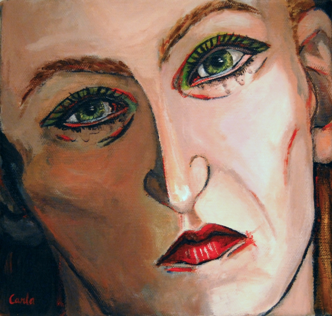 Rood Zwart Portret Gezicht Verdriet Zelfportret Lijnen Sober Close-up Zwaarmoedigheid