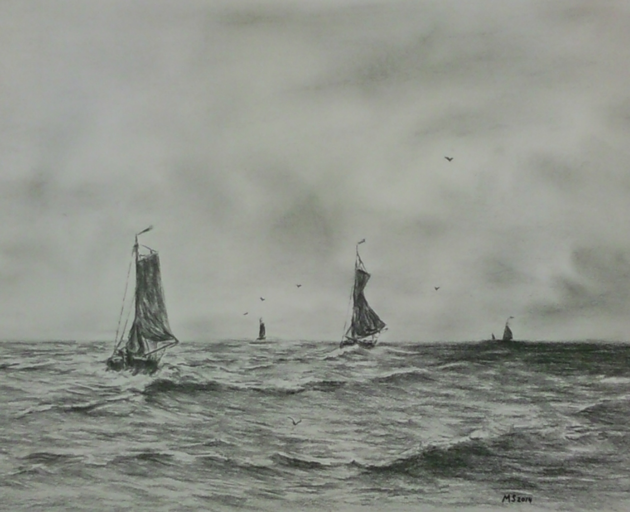 Potlood Tekening Zeegezicht Michael Mesdag Stockfish