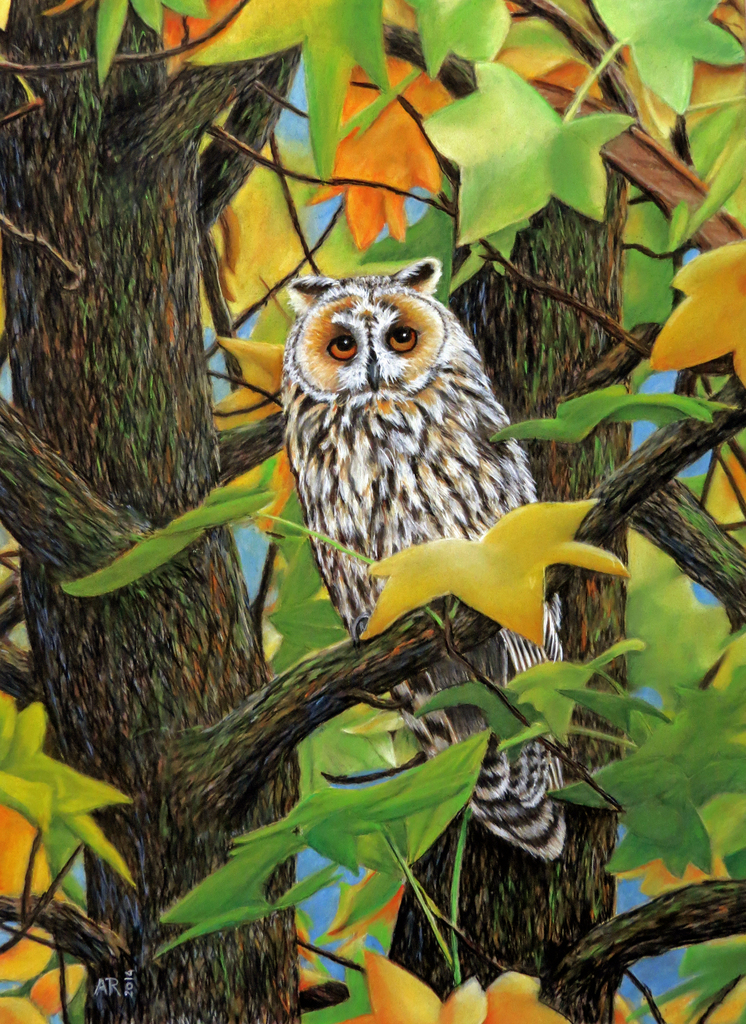 Wit Geel Vogel Yellow Groen Bruin Wildlife Dieren Tekening Green Herfst Pastel White Autumn Brown Birds Drawing Bird Vogels Tree Animals Pastelpotlood Pencil Owl Ransuil