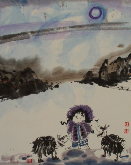 Herdersjongen, chinese inkt