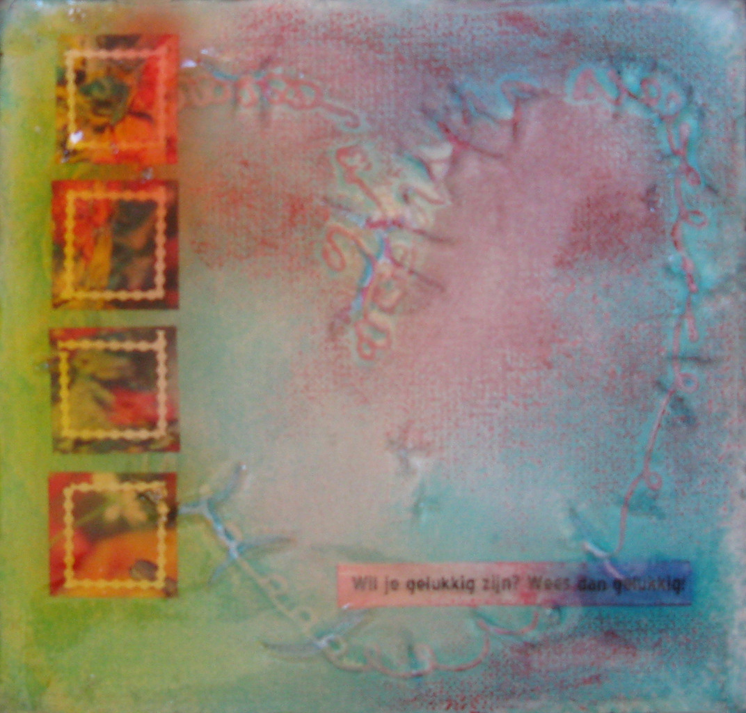 Jolande Leurink maakt kunst waar je naar wilt blijven kijken en waar je steeds iets nieuws in ontdekt. Ze werkt vooral met lagen over elkaar waardoor diepte en diepgang ontstaan. Meestal uitgaande van een mooie tekst of citaat. Ze gebruikt acrylverf, inkt en lak in combinatie met verschillende stoffen, draden en structuren.