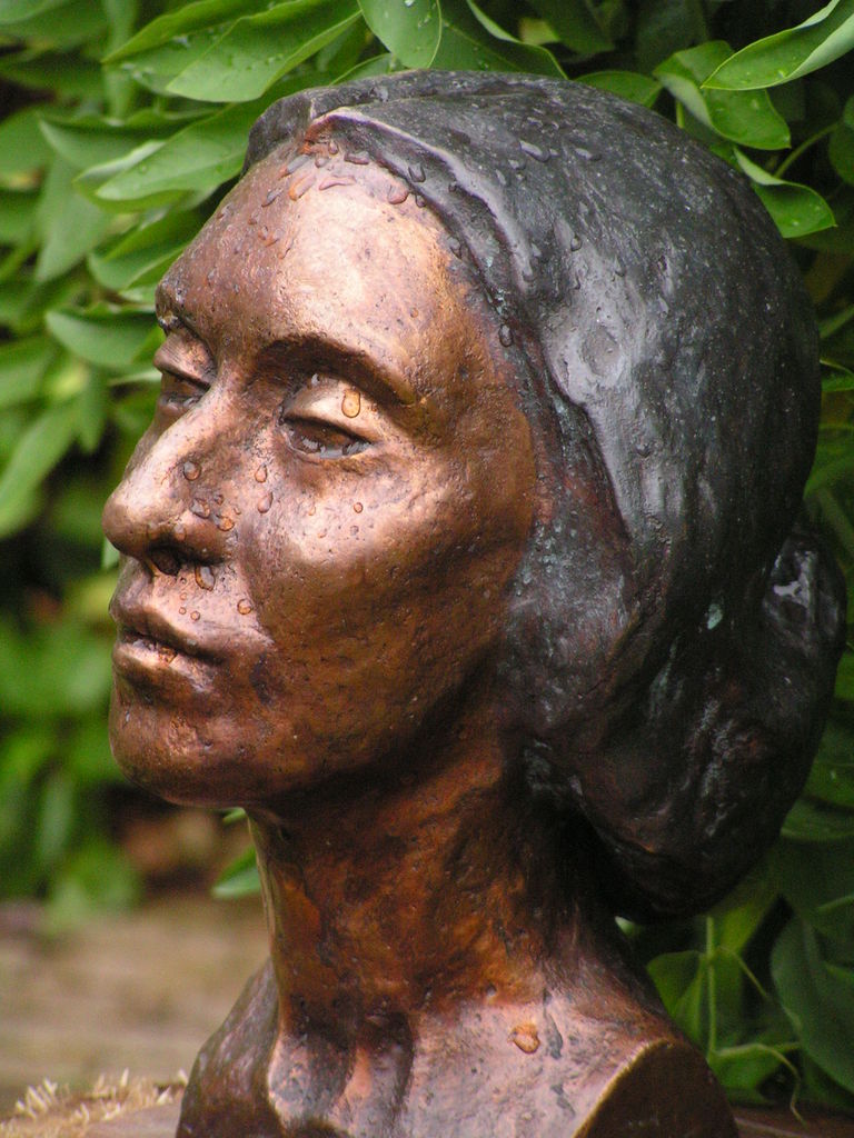 Portret van een vrouw in brons gegoten