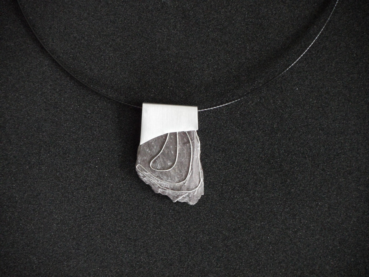 Hanger van Schotse leisteen met aluminium en verzilverd draad.