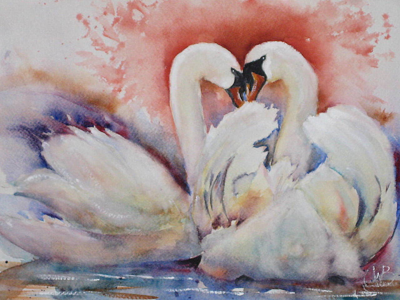 het weergeven van 2 zwanen , maar vooral het overbrengen van emotie, liefde . verkocht.