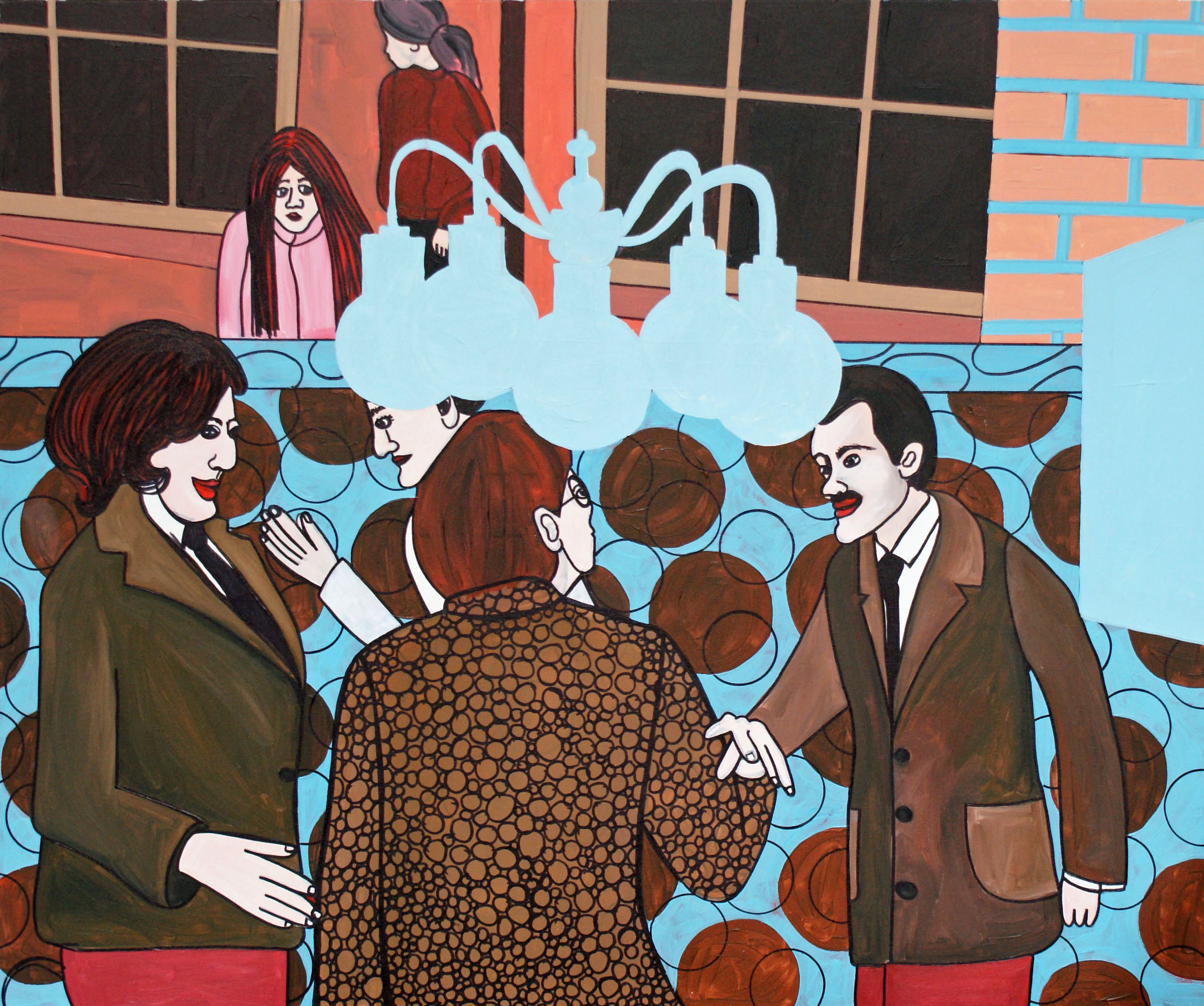 Schilderij Mensen Kroonluchter Bijeenkomst Anjakok Begroeten