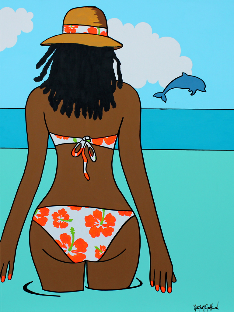 Zee Strand Blue Tropisch Warm Dolfijn Zwemmen Bikini Curacao Ocean Aruba Holiday Swim Swimming Dolpin Bonaire Ibiza Beachart Copyright Kleurrijkekunst Happyart Bluesky Caribbeanart Mirjamgriffioenart Mirjamgriffioen