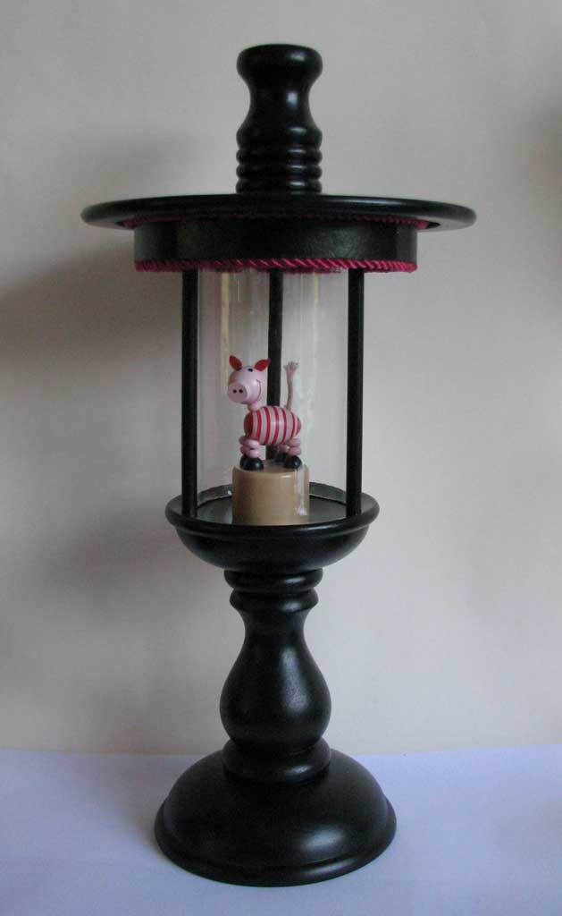 Object Reliek Varkentje Hout Glas Voorwerp Mixed Media Assemblage