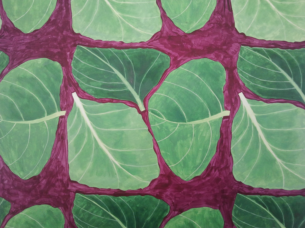 Dessinschilderij koolbladeren.