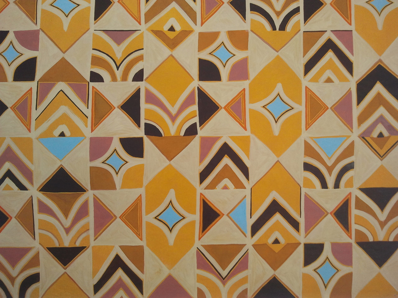 MOnique JAnssen (4-10-1956) is in 1989 afgestudeerd Textiel Dessin Monumentaal aan KABK in Den Haag. MOJA staat voor Decoratieve Design van dessins en structuren op papier, muren, textiel; textiele decors & objecten; textiele technieken zoals zelfontworpen kleding en ook schilderijen. Centraal staan sporen uit oeroud verleden, mystiek onbekende van andere volkeren en natuurlijke gevoelsomgeving.