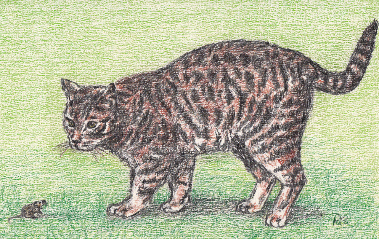 Kat En Poes Watercolor Cat Muis Aquarelpotlood And Pencil Mouse