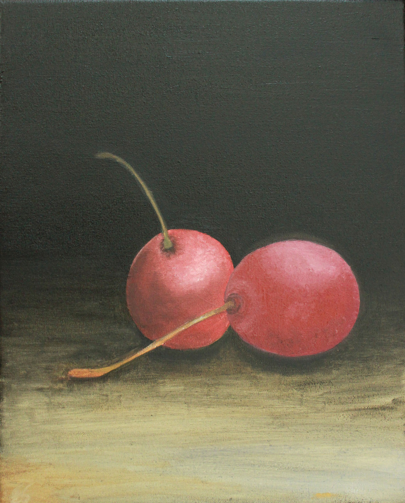 Cherry Kers Kersen Olieverf Oil Painting Rood Red Bright Black Wart Realistisch Realistic Shadow Shade Licht Light