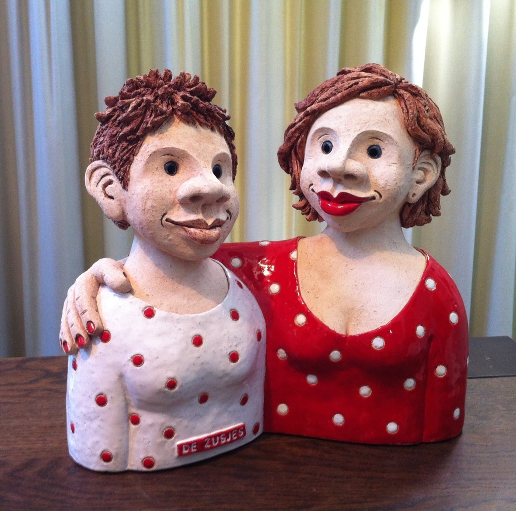 "De Zusjes" Beeld van twee zussen in opdracht.