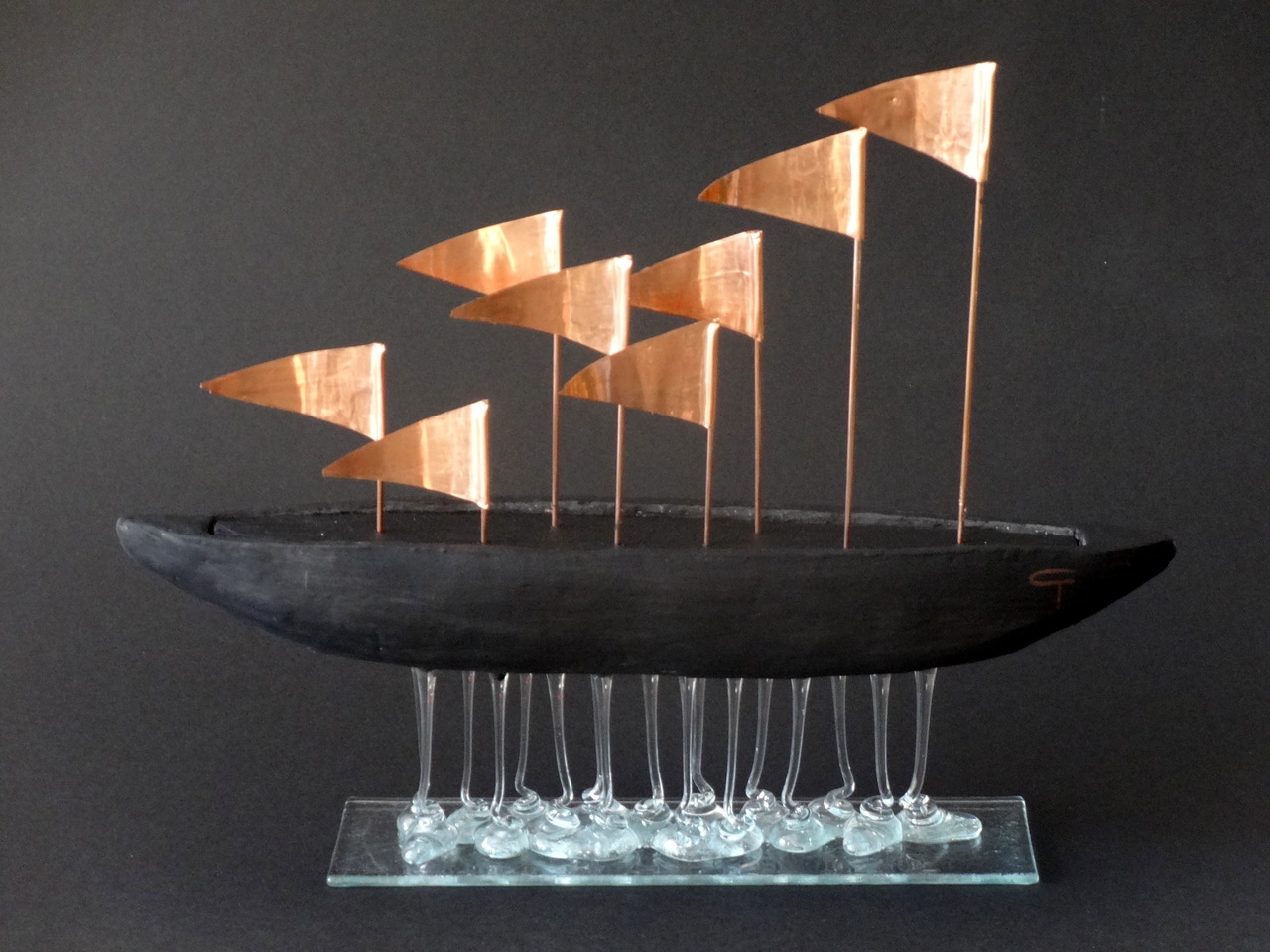Keramisch bootje met gesmolten glas