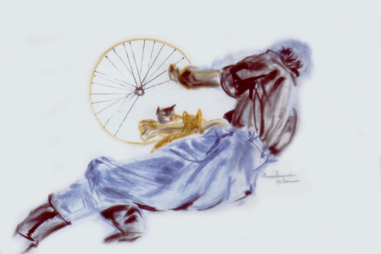 Man met poesjes is vervaardigd met conté carré à Paris op papier.