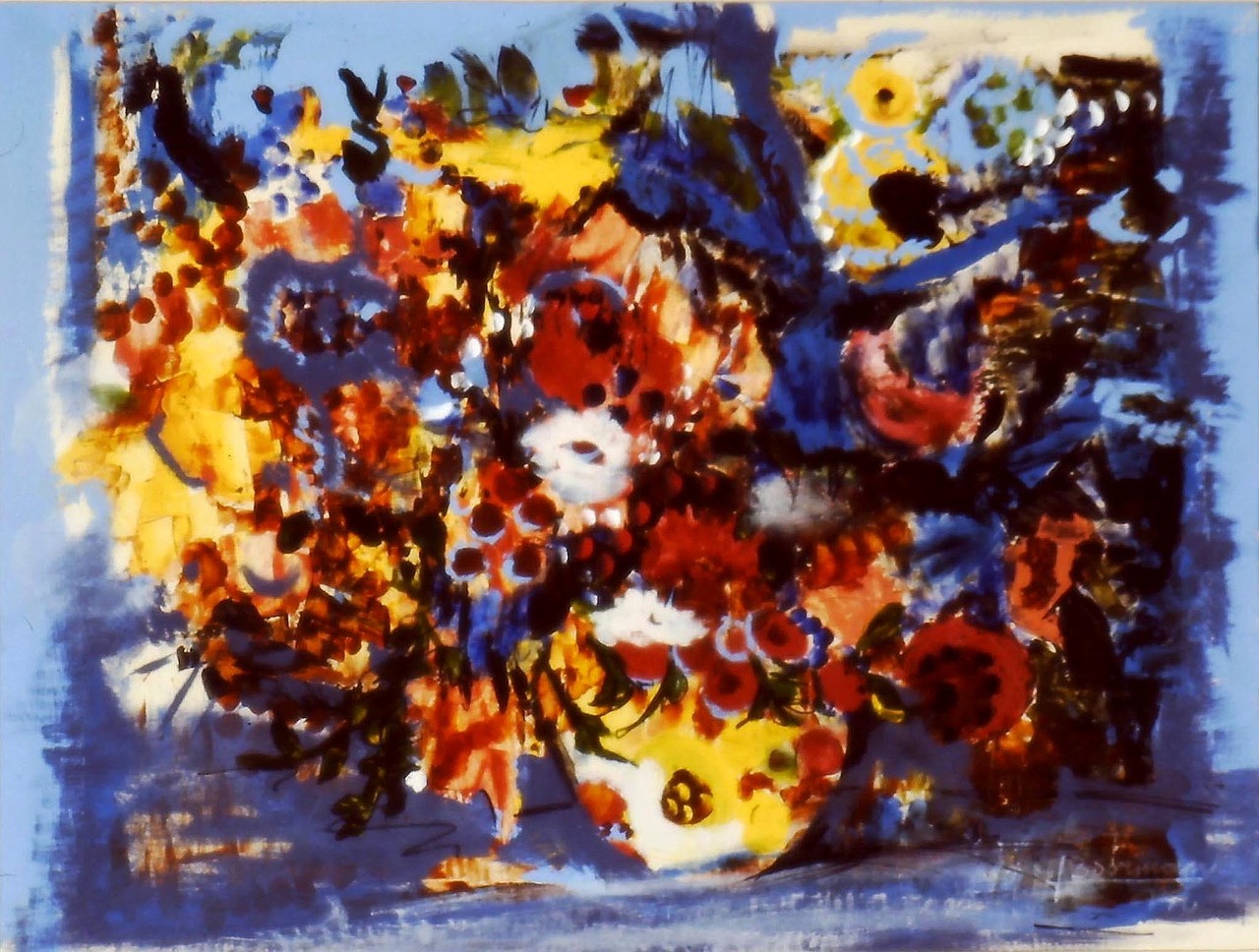 Kleurenpalet van bloemen. Uitgevoerd in acryl.