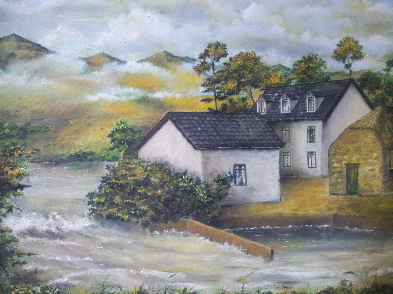 Landschap met een rivier nabij de Pyreneeën en Lourdes in Zuid Frankrijk.