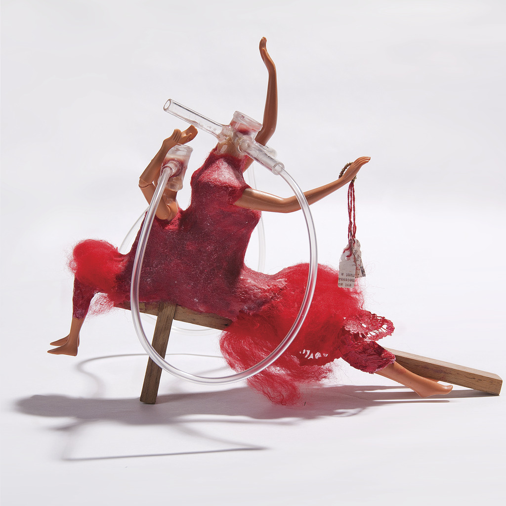 Rood Vrouw Kunst Vilt Textiel Kruis Barbie Laboratorium Kruisverband