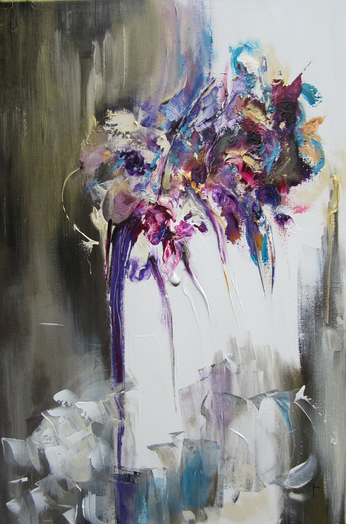 Riny Vroon schildert al vele jaren. Zij werkt zonder te schetsen, spontaan en expressief. Haar doeken prikkelen de verbeelding zodat de kijker er een eigen verhaal van kan maken. Je bespeurt plotseling een rivierbedding, een stadsgezicht of de contouren van bloemen. De harmonie van kleuren is een lust voor het oog.De thema's zijn actueel en herkenbaar voor iedereen.