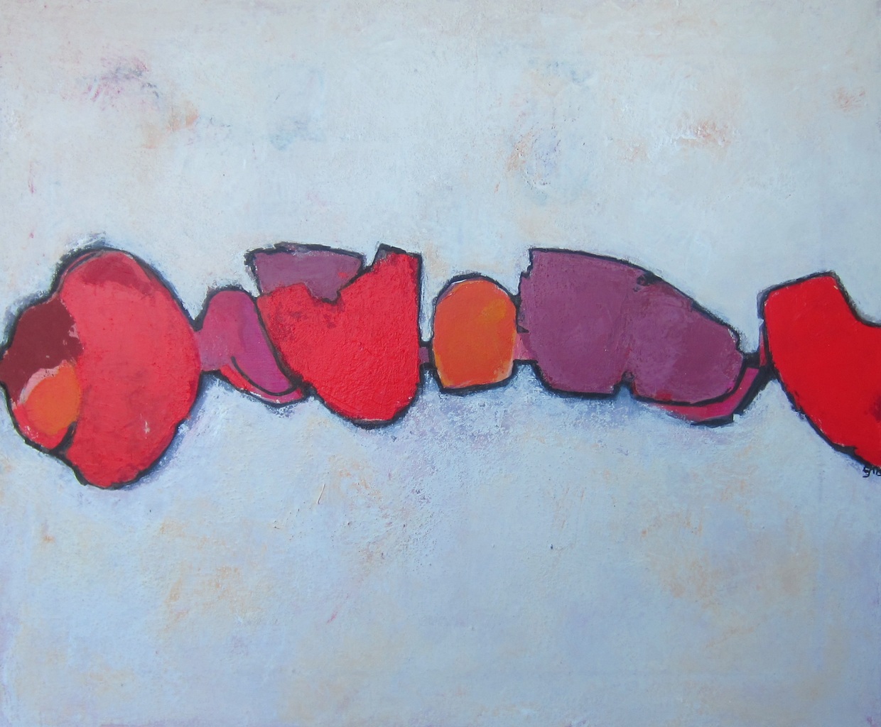 Ik maak abstracte (landschappelijke) collages/schilderijen op doek, paneel of papier met acrylverf en vaak gecombineerd met gemengde technieken.