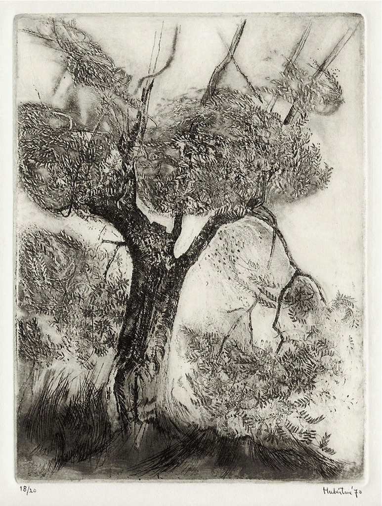Elk blaadje heeft 'n zilverwitte kant. Ik drukte 20 etsen af na 4 proefdrukken.