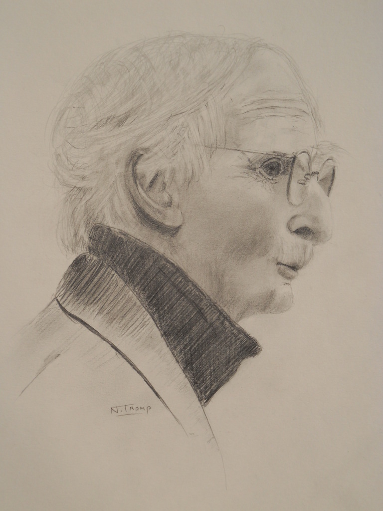 Welkom op de website met tekeningen en schilderijen van Nico Tromp. Ik ben geboren in Santpoort-Noord. Op enkele korte cursussen en workshops na ben ik autodidact. Hoewel ik vroeger al veel tekende ben ik pas veel later, vanaf 1999 weer echt serieus gaan tekenen en schilderen. De aquarellen die ik maak zijn vaak licht van kleur en textuur. De portretten zijn gemaakt met zacht potlood op wit papier of geschilderd als aquarel of met gemengde techniek. Met vriendelijke groeten, Nico Dit is een portret van Adrianus Tromp, getekend met zacht polood. Hij is de jongste broer van mijn vader en in de zomer van 1944 op 17jarige leeftijd verdronken tijdens het zwemmen in het Noordzeekanaal.