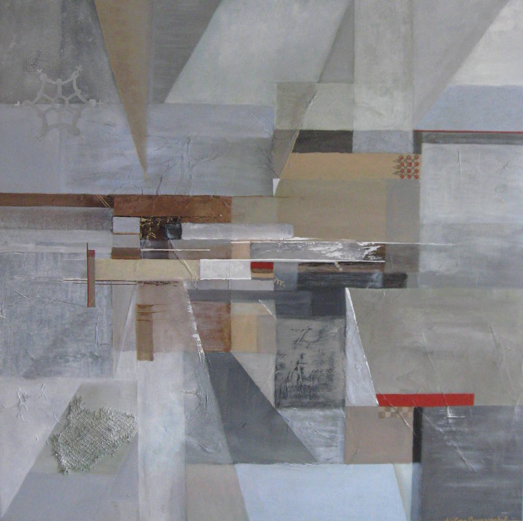 Acryl Doek Lijnenspel Grijstinten Abstrakt
