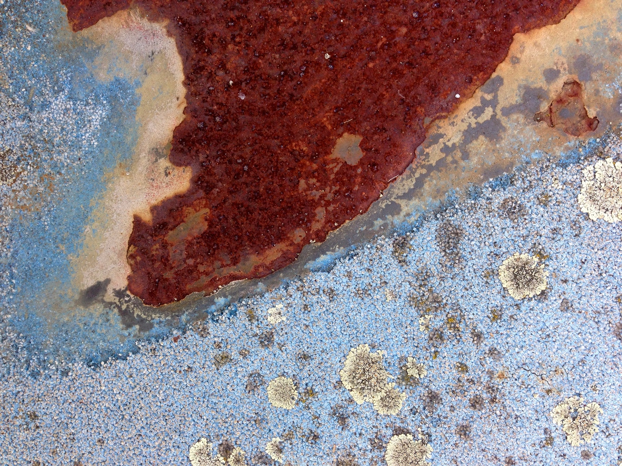 Close up van roest in de Rotterdamse haven. Deel 1 van een serie van vier foto's. Geprint op aluminium/ dibond (wit) 75 x 100 cm. www.irisdepasse.nl