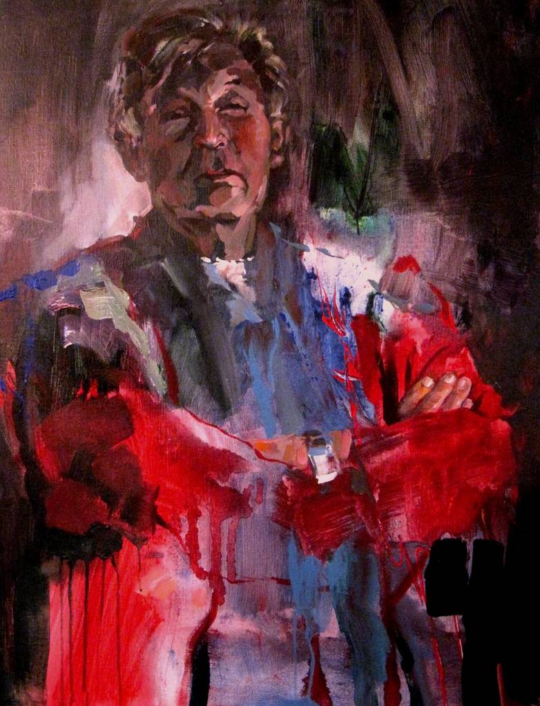 Rood Blauw Paars Groen Portret Man Figure Portrait Head Opdracht Kunstenaar Artist Heer Gentleman Joke Proper Commission Meneer