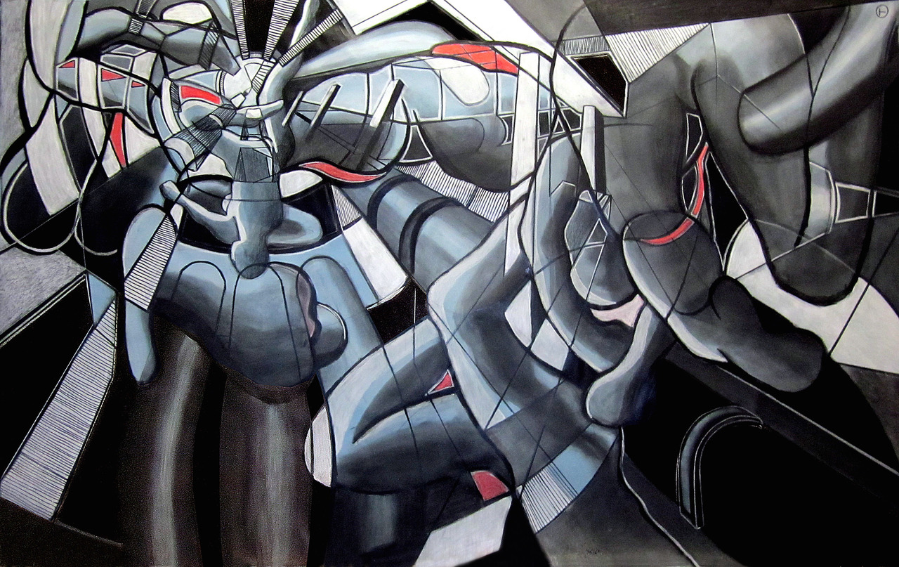 Drawing is a discipline in which ‘looking outside’ and ‘looking and moving within the frame of the paper’ is very important. Sources of inspiration are urban and industrial landscapes and shapes of the human body. Tom’s work consists of countless shades of black but he also uses colour in an exciting way. The artworks change as the daylight changes. Observations and impressions from spending time outdoors inspire his artwork. His skilled drawings may develop into new drawings as well as paintings. In his paintings he combines colour, patches and blots with lines to create several spaces.