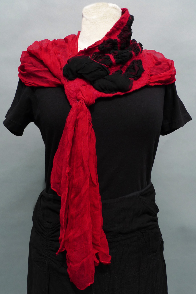 Rood Zwart Zijde Vilt Textiel Sjaal Sieraad Vilten