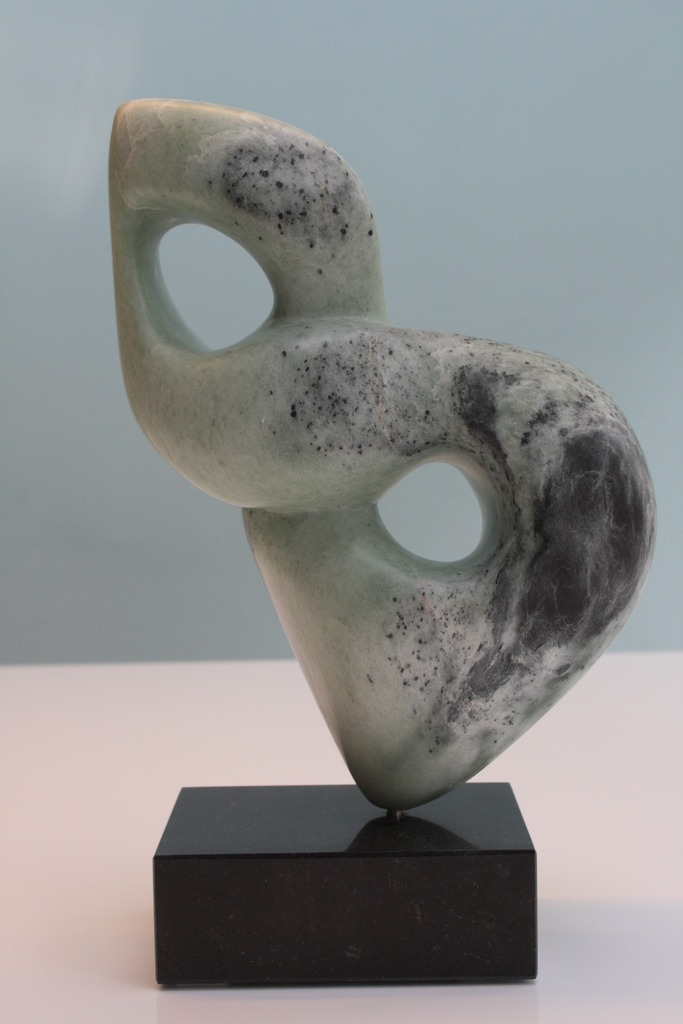 Beeld in Indisch speksteen. Twee verschillende zijde met betrekking tot de kleur. Op hardsteen sokkel. Prijs inclusief btw en commissie bij galerie aankoop. Aankoop buiten exposities bij kunstenaar mogelijk.