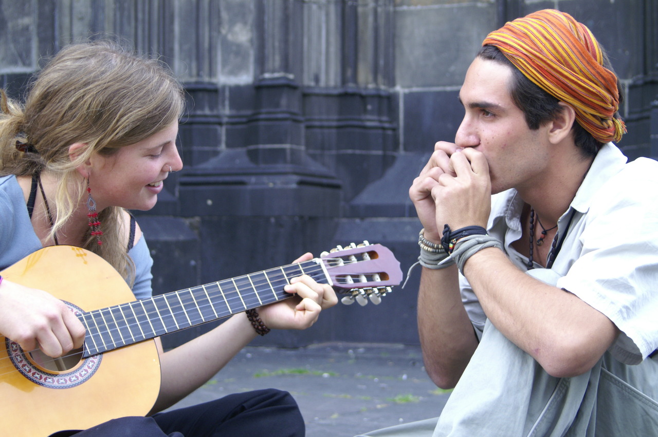 Twee straatmuzikanten in Keulen