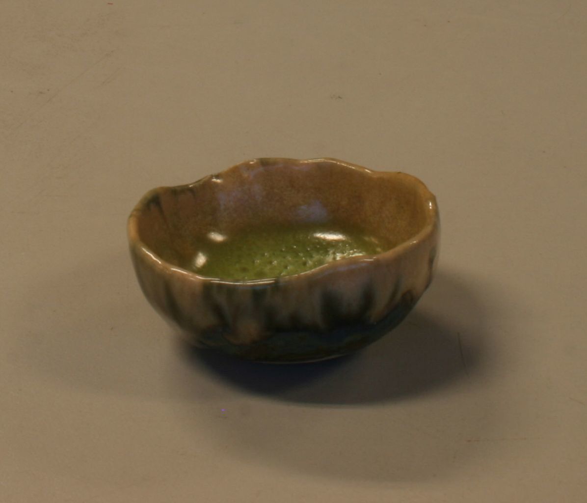 Steengoed keramiek schaaltje met kristalglazuur. Leuk als setje bij het soortgelijke iets grotere schaaltje.