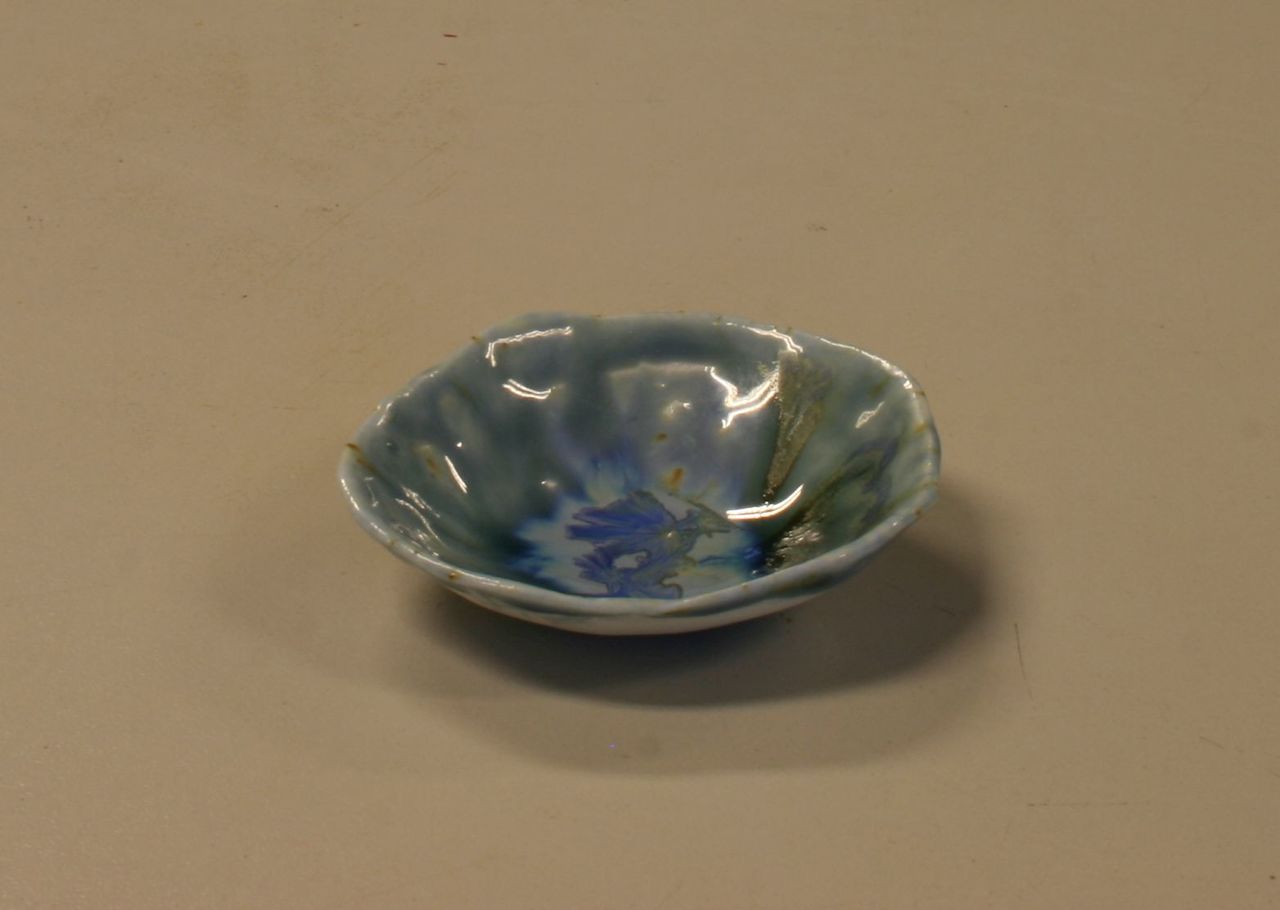 Porseleinen minischaaltje met kristalglazuur. Handgevormd, unica.