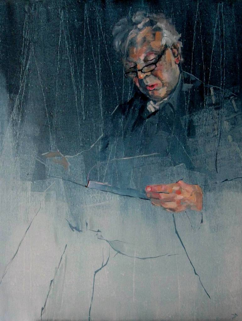 Wit Blauw Blauwen Portret Man Model Figuur Portrait Zittend Warm Opdracht Lezend Heer Gentleman Koel Filosoof Meneer Philosopher
