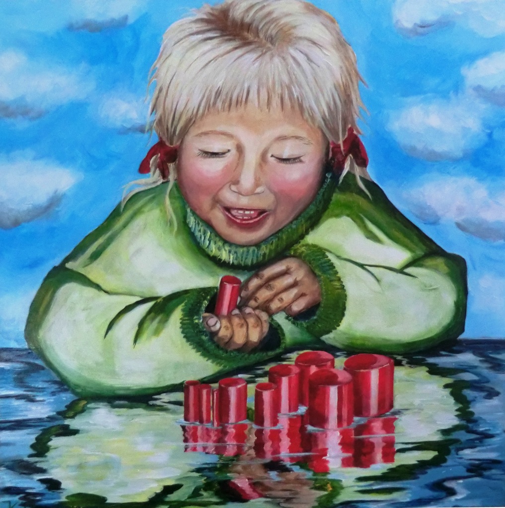 Spelend kind met Montessorimateriaal. Lucht, water en voeding - Ruimte, stimulans en materiaal. Gemaakt voor de Het Mozaik in Dordrecht.