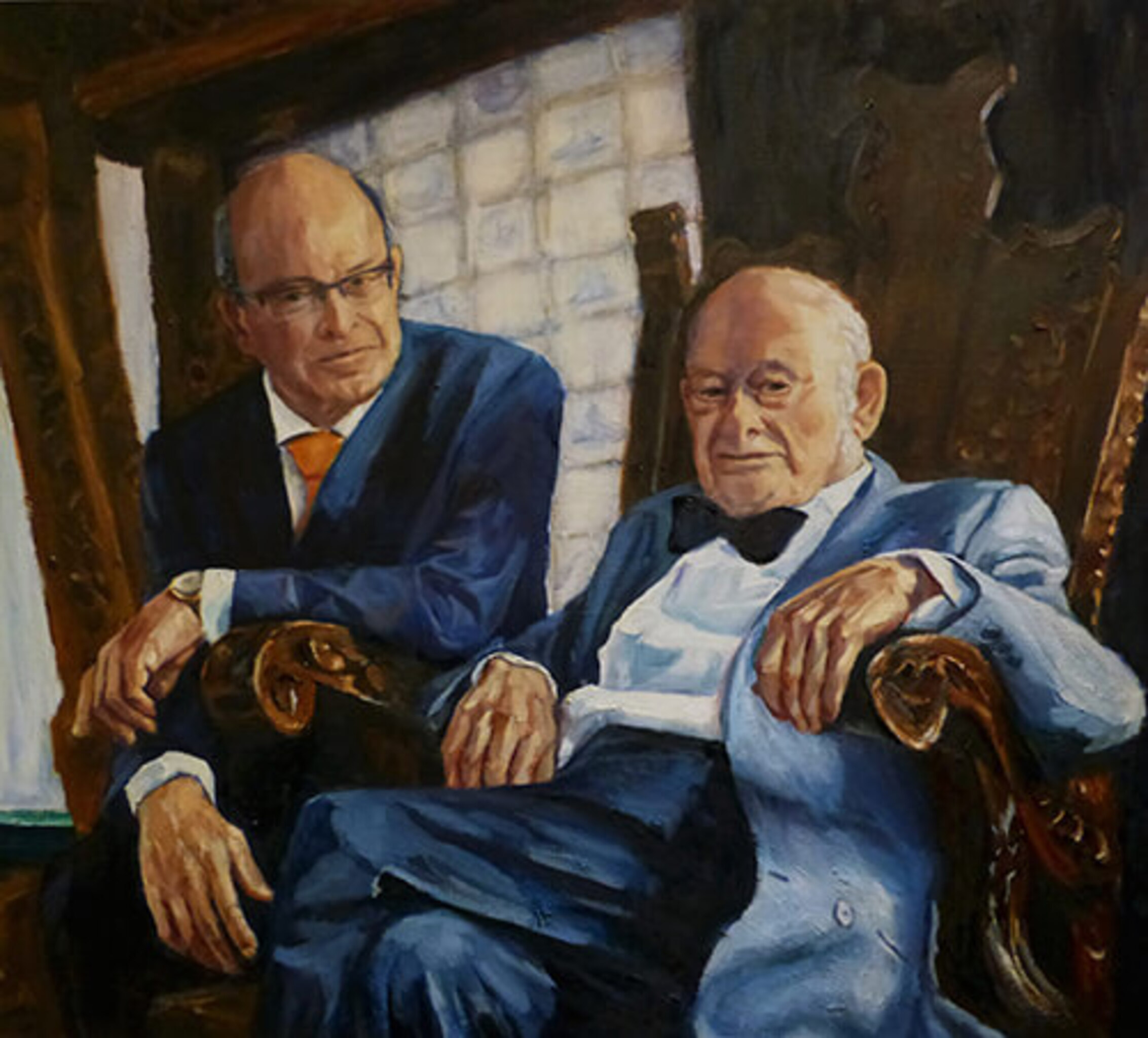 Een dubbelportret van de 95-jarige heer Piet Rombouts en zijn zoon Geert.