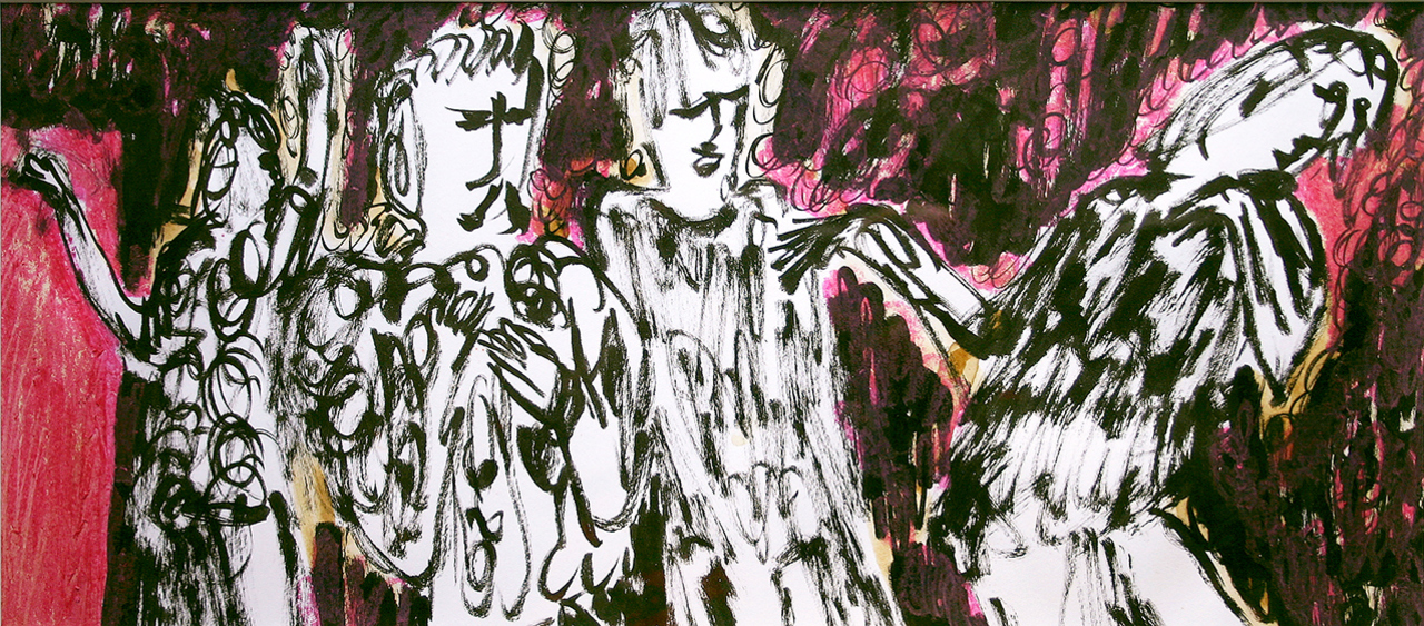 marker, oostindische inkt, krijt, alcohol, koffie en acryl op papier