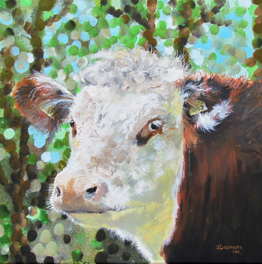Gefascineerd door de karakteristieke 'krullenkop' van de Hereford heeft Yoeri geprobeerd deze zo goed mogelijk weer te geven.