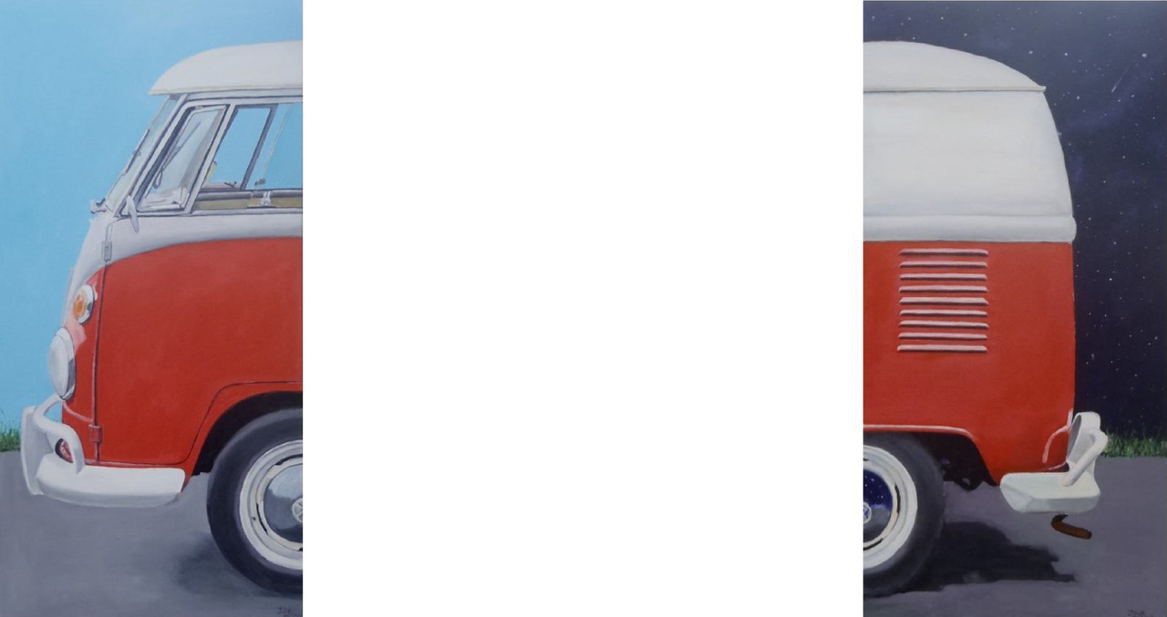 Formaat twee doek van 50cm x 100cm. Ze hangen 117cm uitelkaar.