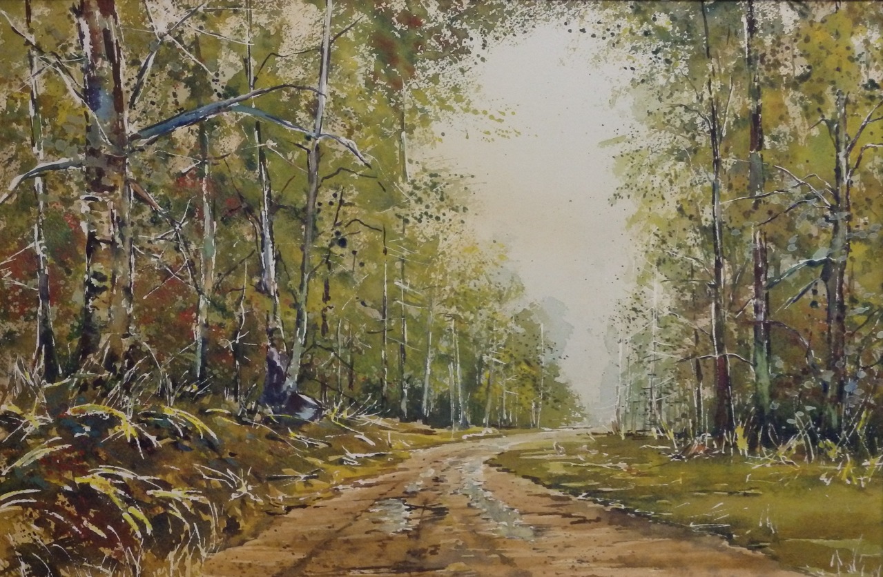 Realistische aquarellen en olieverf schilderijen van Hollands landschap, met altijd expressieve luchten boven de lage horizon zich spiegelend in de waterrijke polder. Ook werken uit de Franse Morvan en van de Oostelijke Algarve in Portugal.