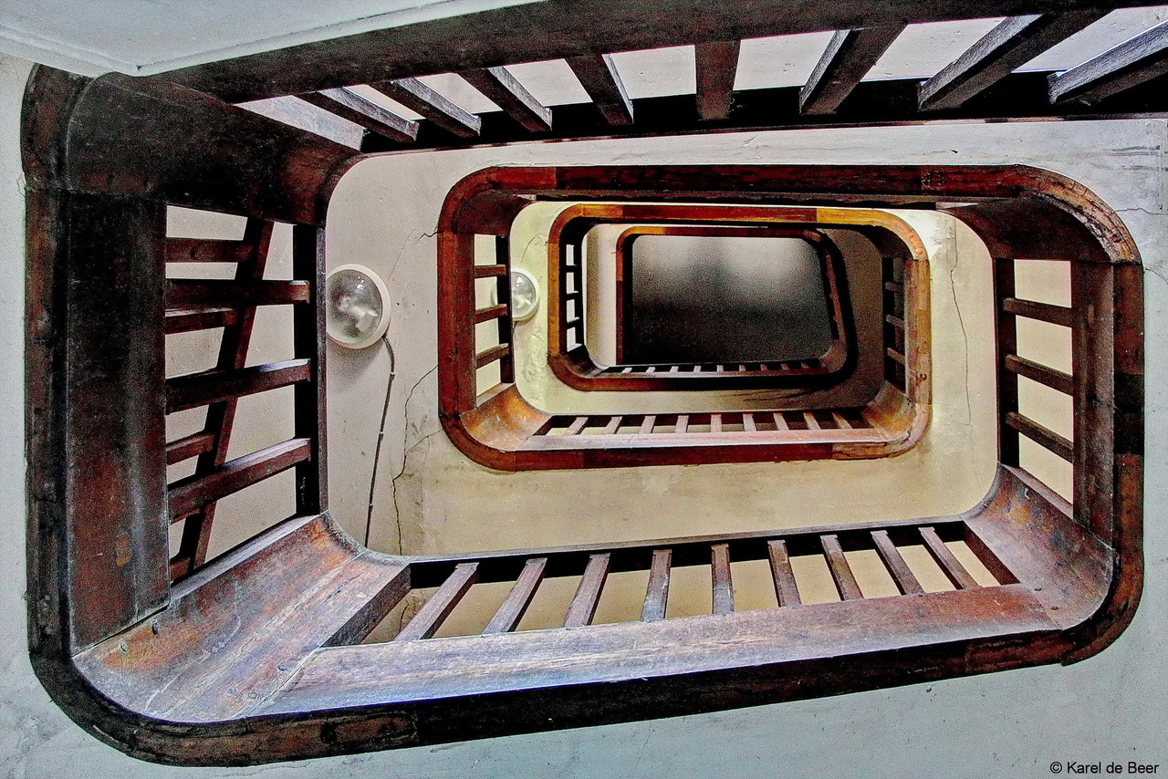 Trappenhuis in een zijvleugel van het kasteel van St.-Fargeau (Yonne, Bourgogne, Frankrijk), een groot kasteel met nogal wat achterstallig onderhoud. Gefotografeerd in 2013 met een Canon 60D. Beschikbaar als fotoprint op dibond, bedekt met plexiglas 3 mm. Beperkte oplage, tot 10 stuks.