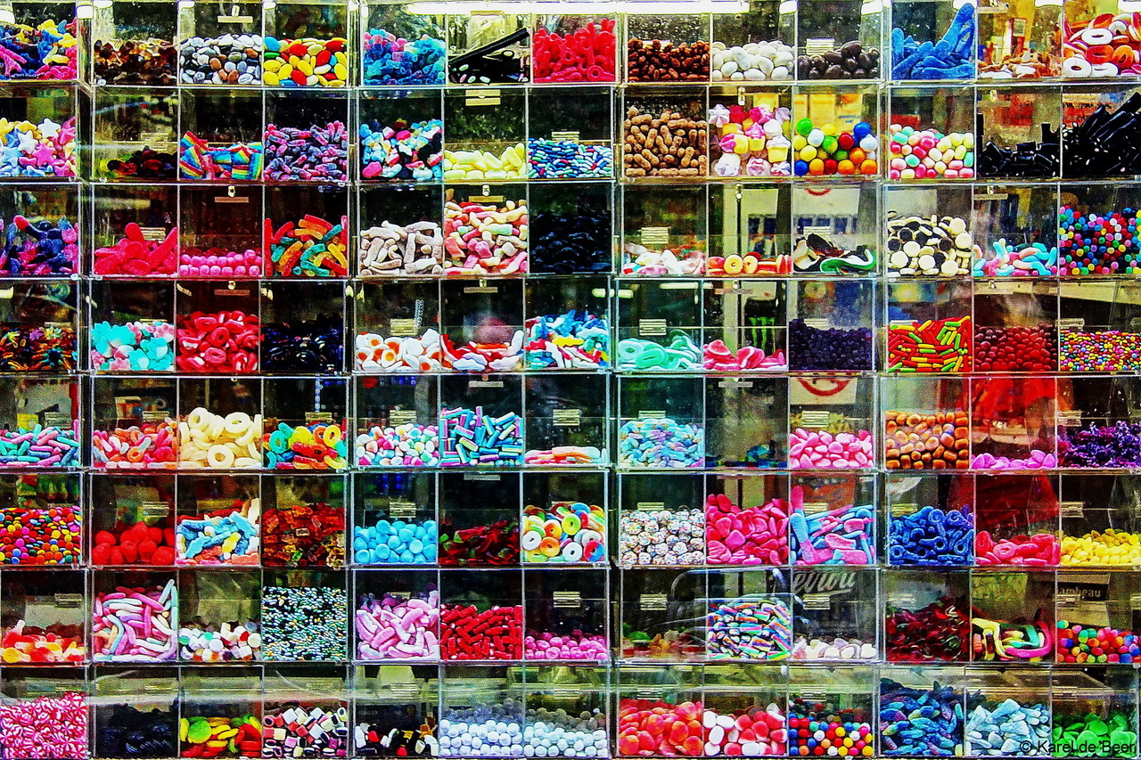 Voor de etalage staand van een snoepwinkel in Tours (Frankrijk, Loire) zag ik deze 'bonte kermis' met liefst 104 bakjes lekkernijen. Foto in 2014 gemaakt met een Canon 60D camera. Beschikbaar als fotoprint op dibond, bedekt met plexiglas 3 mm. Beperkte oplage, tot 10 stuks.