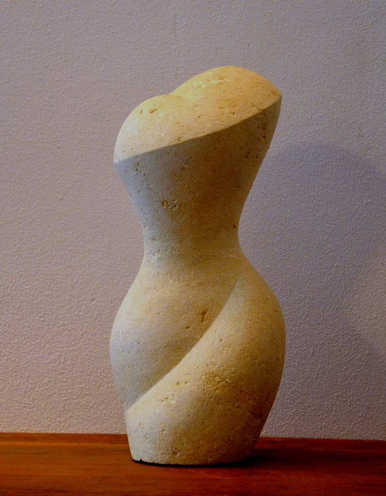 dansende vrouw in crème kalkzandsteen, tuinbeeld