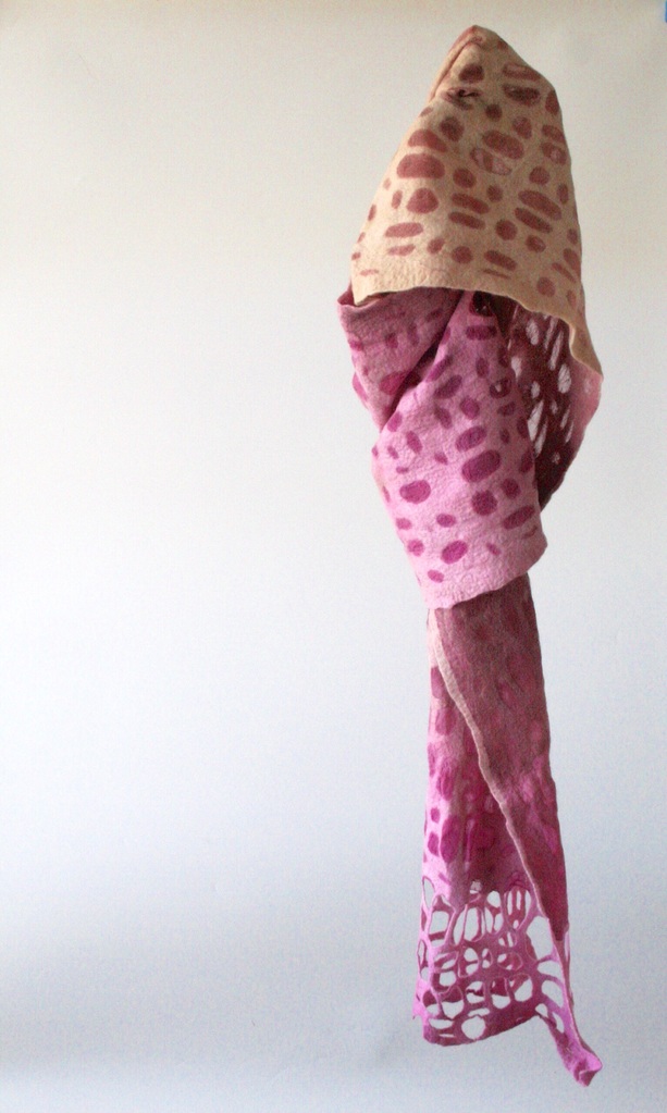 Oker Zijde Wol Roze Vilt Shawl Sjaal Chiffon Pink Geometrisch Geometric Stola Ochre Felt Wool Stole