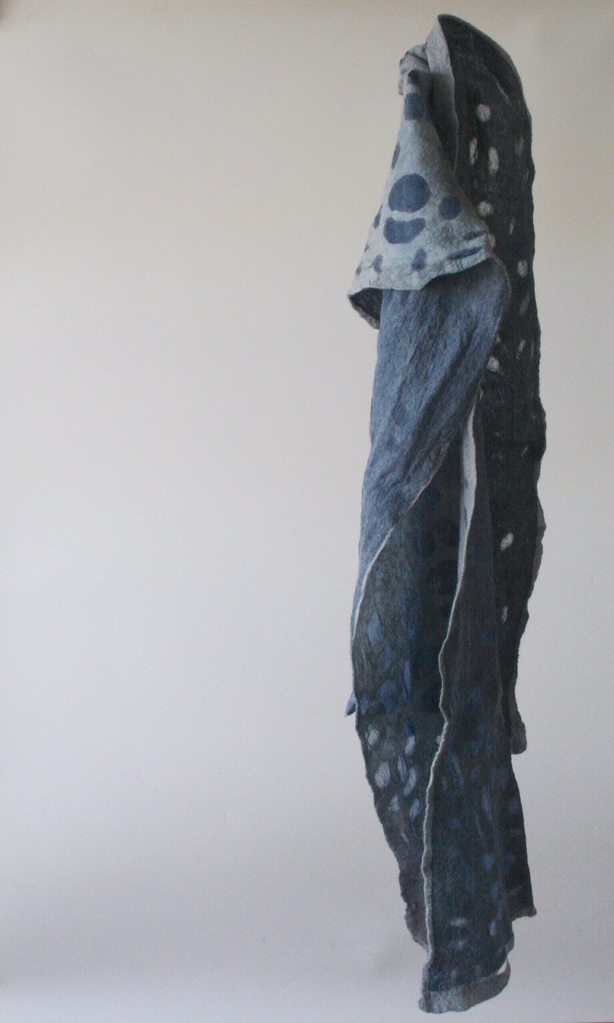 Wol Zijde Vilt Sjaal Stola Geometrisch Indigo Blauw Wool Chiffon Felt Shawl Stole Geometric Blue