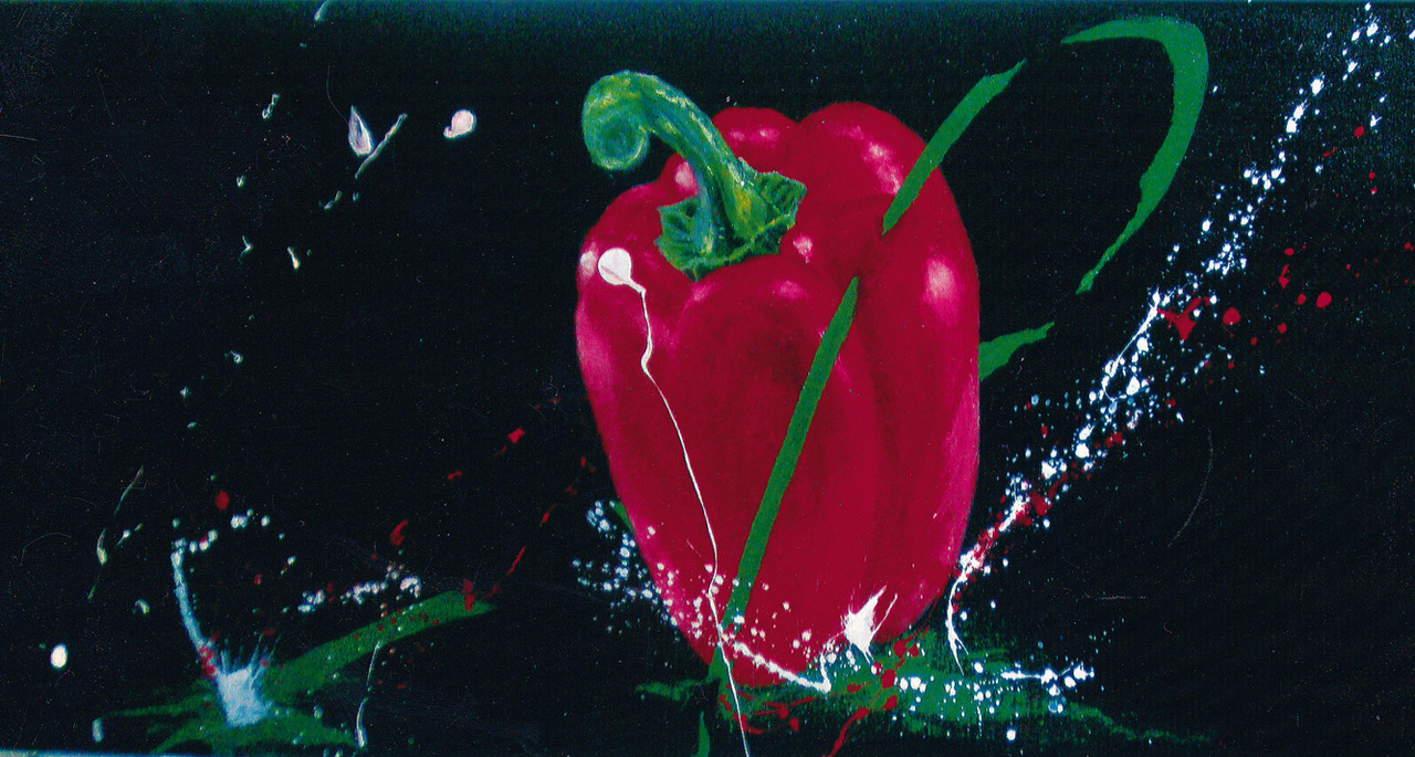 Figuratief Modern Rood Zwart Paprika Stilleven Liggend Spetters