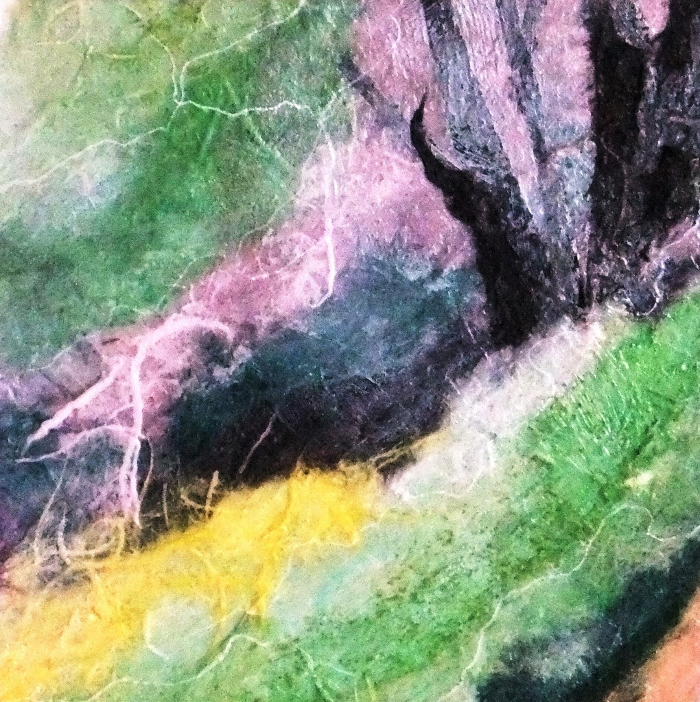 Maakt voornamelijk landschapselementen met voornamelijk bomen als thema en inkt en kleurpapier