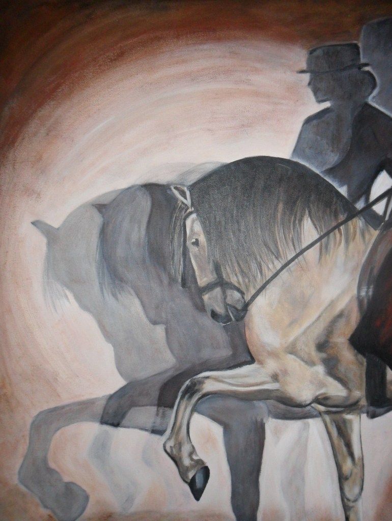 Graag neem ik U mee om een kijkje te nemen in mijn wereld waar paarden een centrale plek innemen. Na jaren actief recreatie ruiter te zijn geweest, zijn deze fascinerende dieren weer op mijn pad gekomen maar dit keer leg ik ze vast op het doek. De verschillende takken van sport, de prachtige uitstralingen en bewegingen, de schoonheid, ik probeer het allemaal te beheersen. Andere dieren schilder ik ook en natuurlijk zijn mijn eigen hond en kat dan ook model geweest.